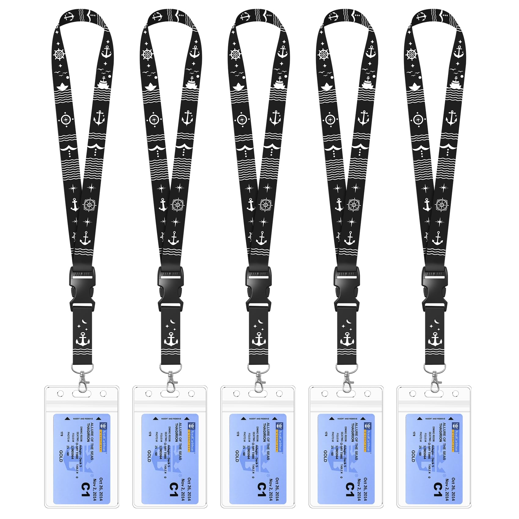 5 Pack Lanyard with Waterproof ID Badge Holders for Cruise Ship Cards