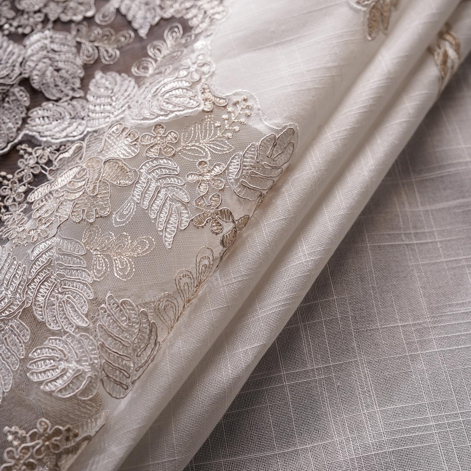 - DESIGN: Elegant embroidery on high quality fabric, together with heavyweight macrame lace border