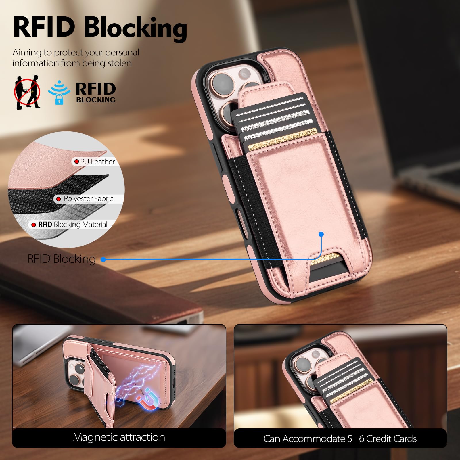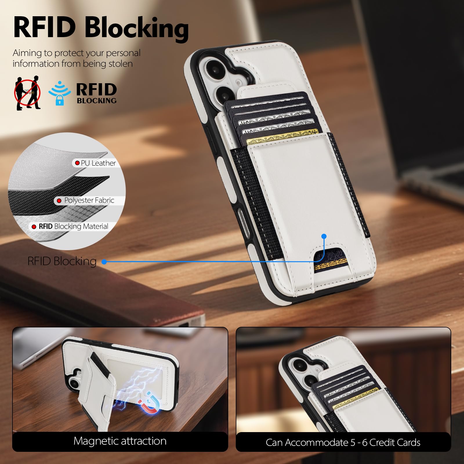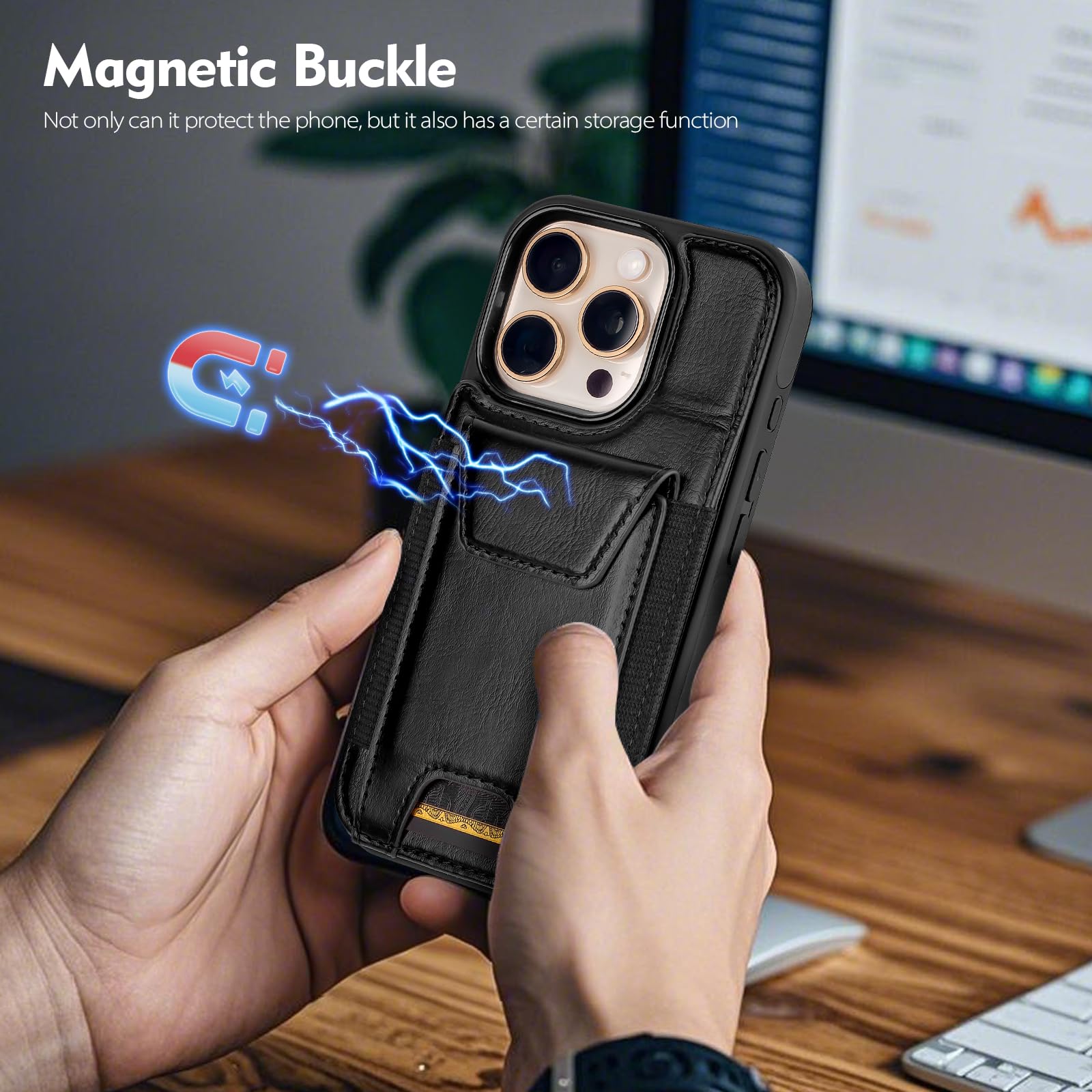 Compatible with iPhone 16 Pro Max Wallet Case with Card Holder,Women Men,Phone Case PU Leather RFID Blocking Shockproof Magnetic Flip Cover Credit Card Slots Kickstand Function