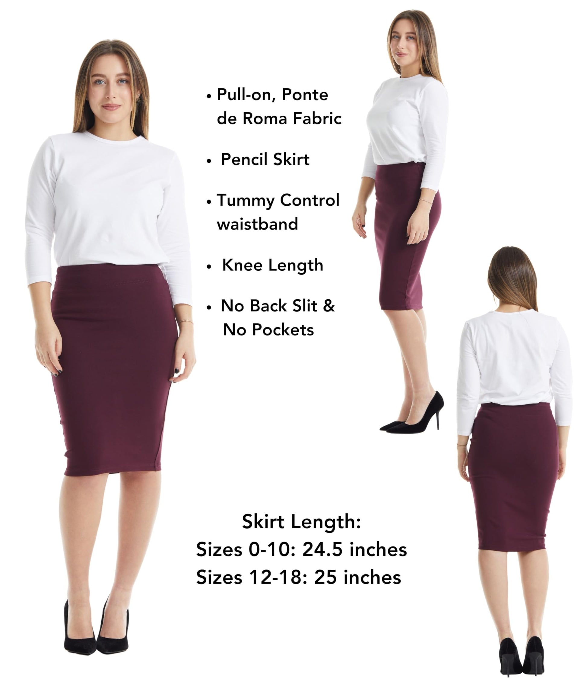 ESTEEZ Women's Pull-On Stretch Ponte Office Pencil Skirt 'Houston'