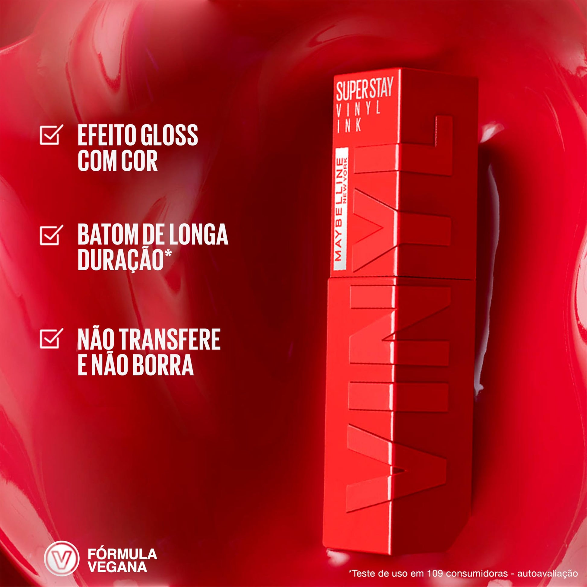 Shake up your longwear with Super Stay Vinyl Ink. This Liquid Lipcolor delivers no-budge saturated vinyl color and up to 16HR wear. Its color lock formula defies smudging and transfer. Swipe the formula across your lips and enjoy an instant shine and all day color. Available in 10 high-impact vinyl shades for your every lip look. From brights to saturated red tones and even the perfect everyday neutrals, express yourself with Maybelline longwear lipcolor