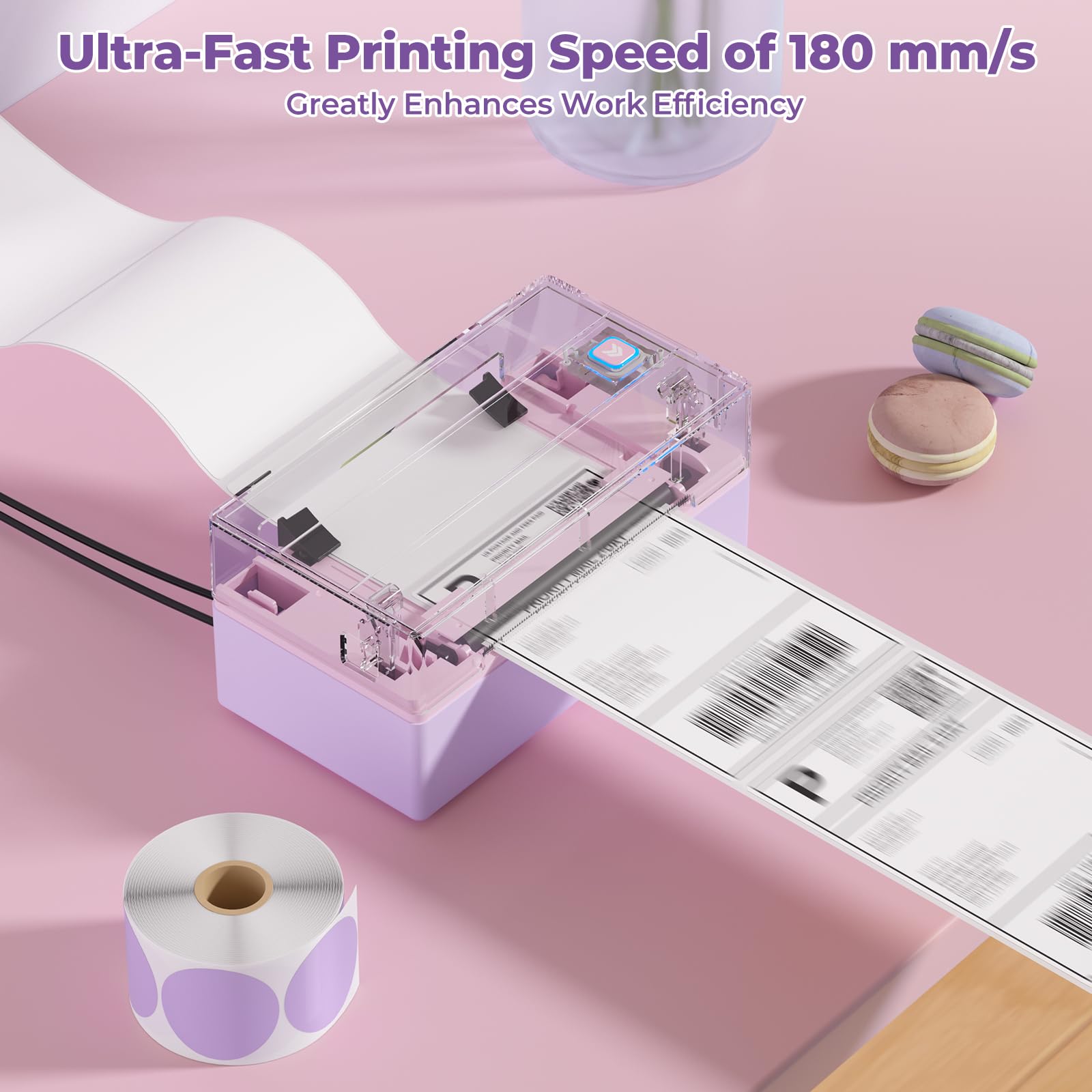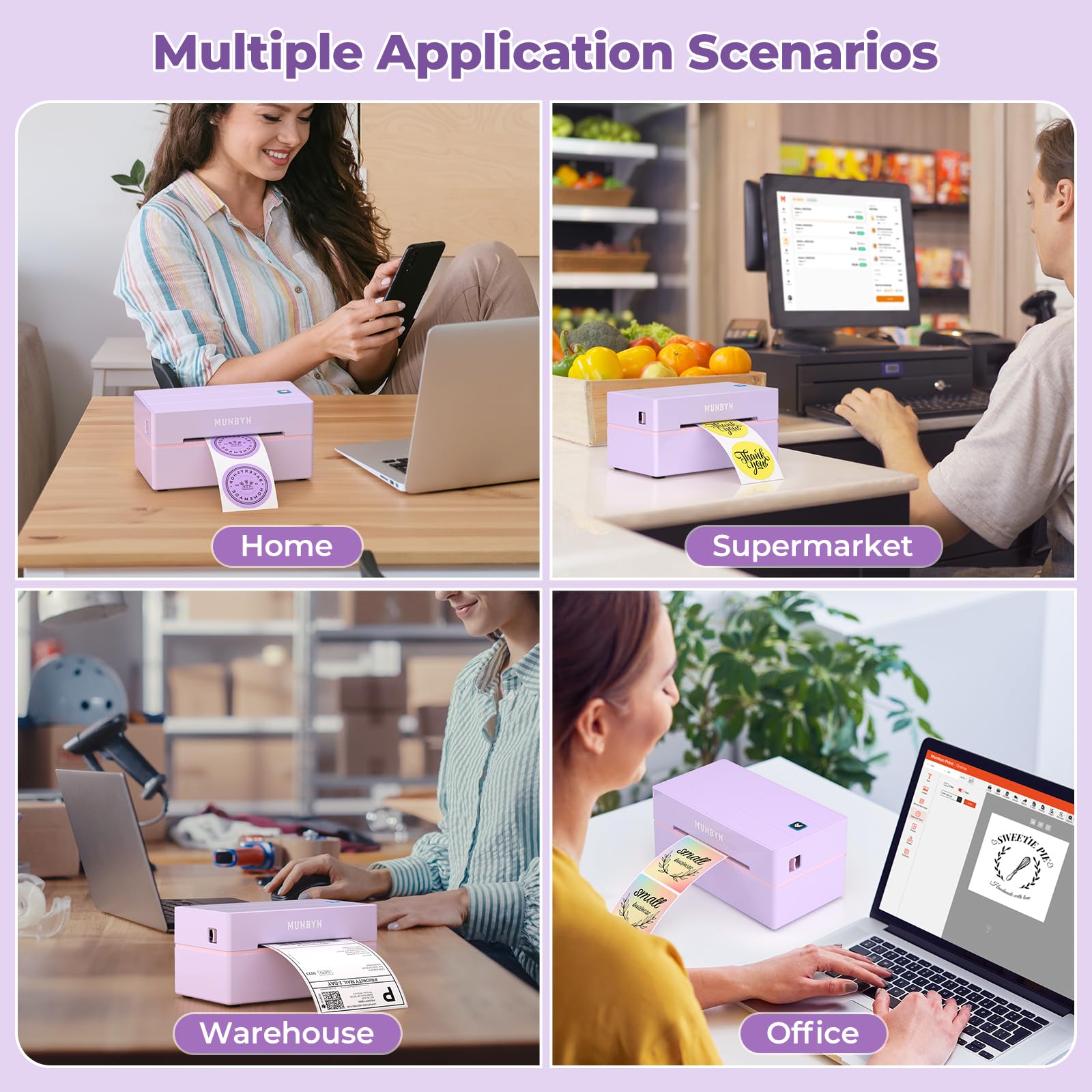 - Wide Compatibility: Works with major shipping platforms like FedEx, UPS, and USPS, as well as marketplaces including Amazon, Shopify, Etsy, and eBay. This shipping label printer supports labels ranging from 1.57" to 4.3" in width and is available in colors such as pink and Lavender Purple. Note: The 130B Bluetooth thermal printer may have issues with UPS thermal paper; MUNBYN thermal labels are recommended