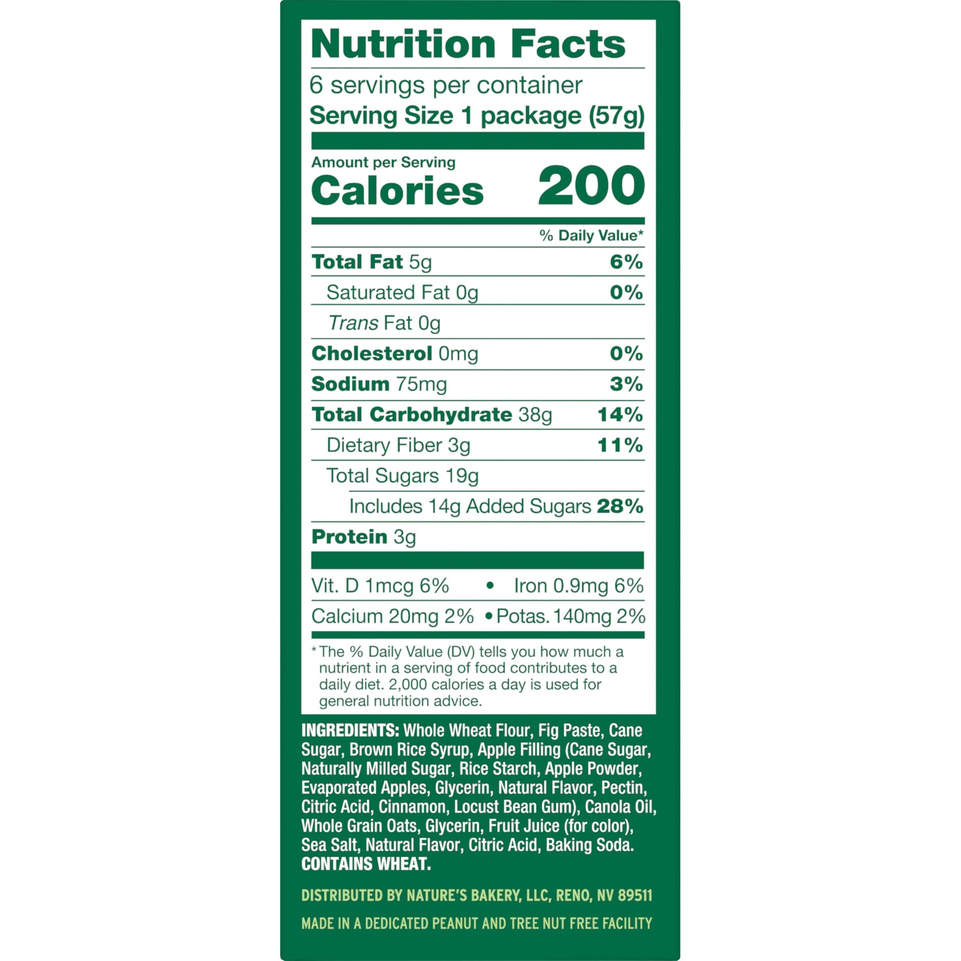- NUTRITION Made with you and your family in mind, Nature's Bakery Whole Wheat Fig Bars are soft-baked with NO cholesterol, GMOs or high fructose corn syrup. No Artificial Flavors, Certified Vegan, Plant Based, Kosher, Made in a Nut-Free Facility, Low Sodium, Soy Free, Dairy Free, and 0g Trans Fat