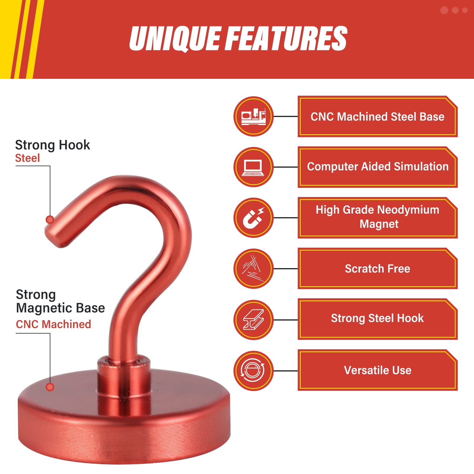 - SUPER POWERFUL MAGNETIC HOOKS - Experience the strength of Neosmuk magnetic hooks, made from heavy-duty metal with a CNC machined steel base and the latest generation super Nd-Fe-B ‘magnetic king’ magnets. These hooks offer exceptional pulling force under steel, making them perfect for hanging items on the fridge, grill, or metal doors. A must-have for heavy-duty hanging needs.