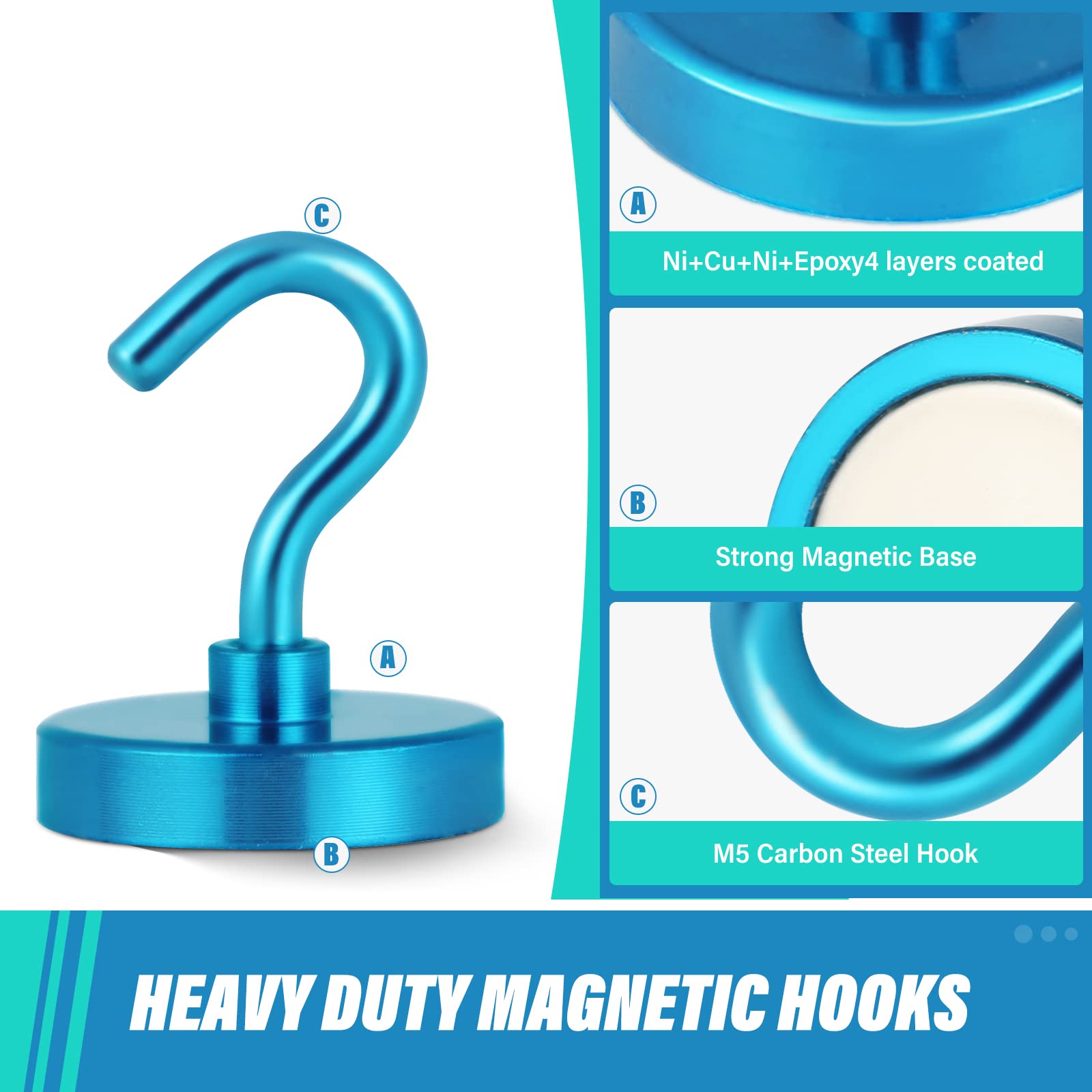 - EXTRA STRONG HOLD WITH LARGER BASE - Neosmuk 30lb+ magnetic hooks (measured on an automatic tension machine) feature a larger base (0.67 inches) and a thicker magnet for superior strength. These permanent magnet hooks provide a strong hold that lasts forever, making them perfect for home, travel, or industrial use where reliable holding power is needed.