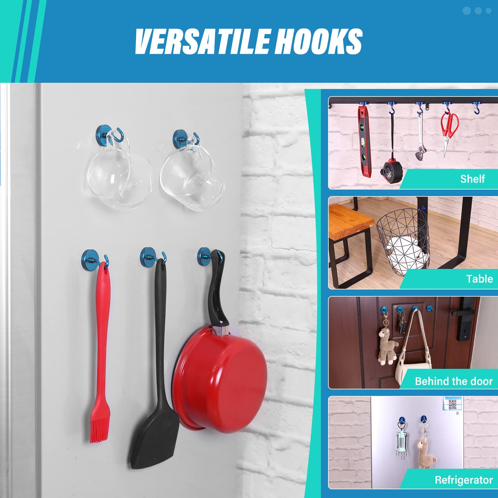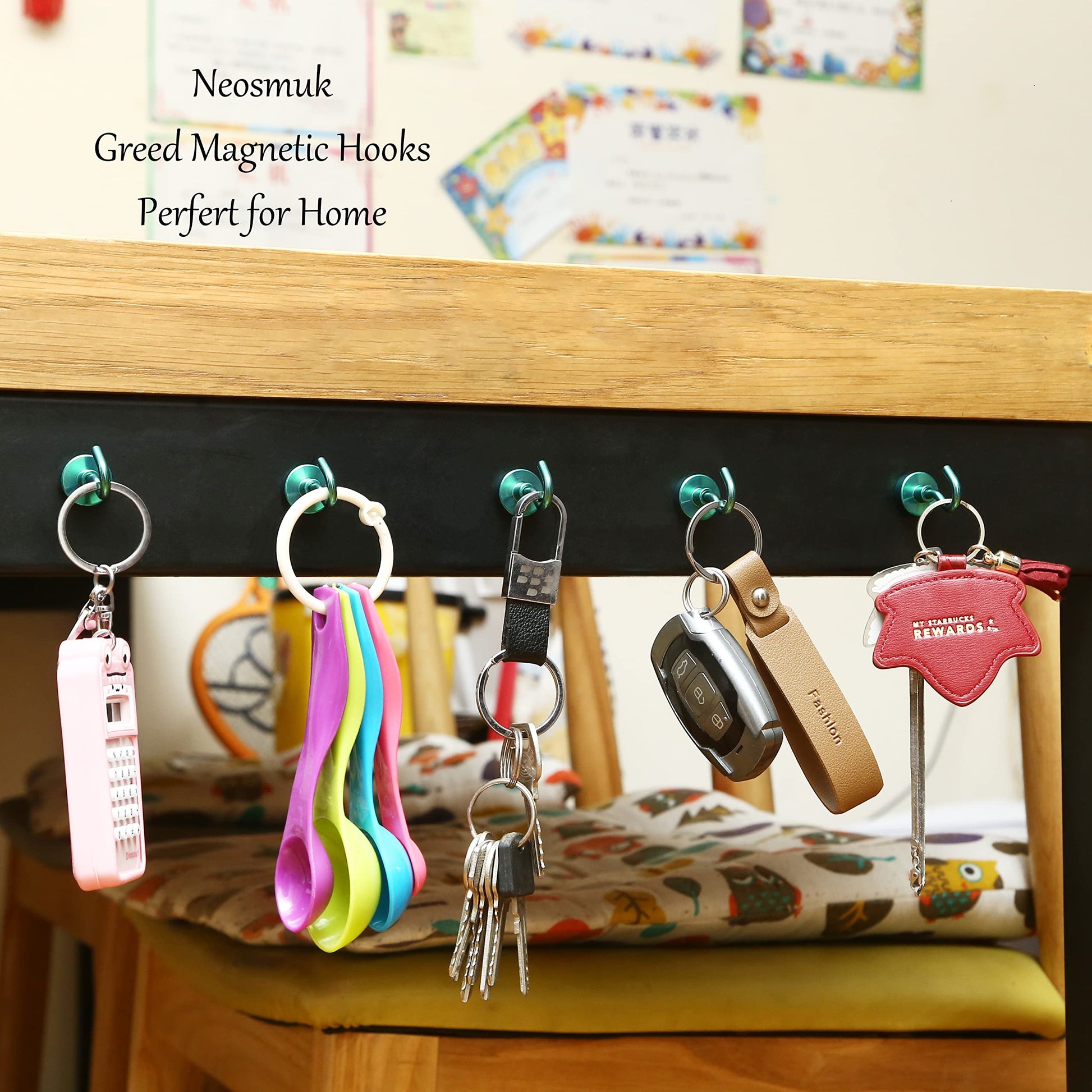 - VERSATILE AND RELIABLE USE - From cruise cabins to home kitchens, these strong neodymium magnetic hooks can securely hold various items wherever there is iron or steel. Use them as a magnetic key holder, to hang tools next to a toolbox, or to organize kitchen utensils, cups, pots, or grilling tools. Neosmuk magnetic hooks offer powerful and reliable solutions for all your hanging needs.
