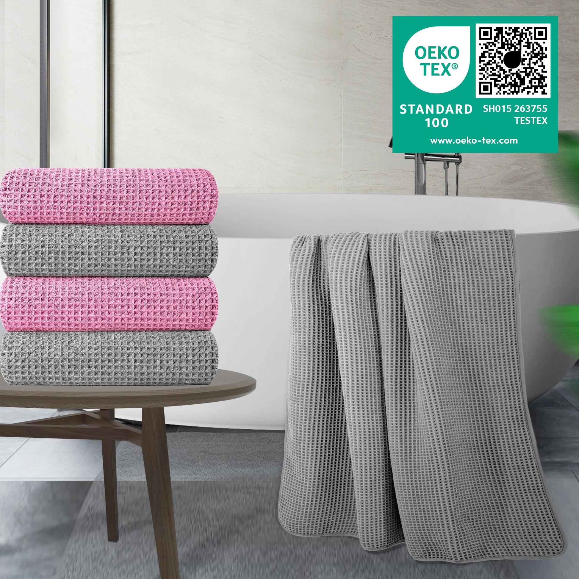 - Microfiber thoroughly dries faster and gentler than traditional fibers; waffle weave feels smoother on your skin and is less likely to collect lint or debris