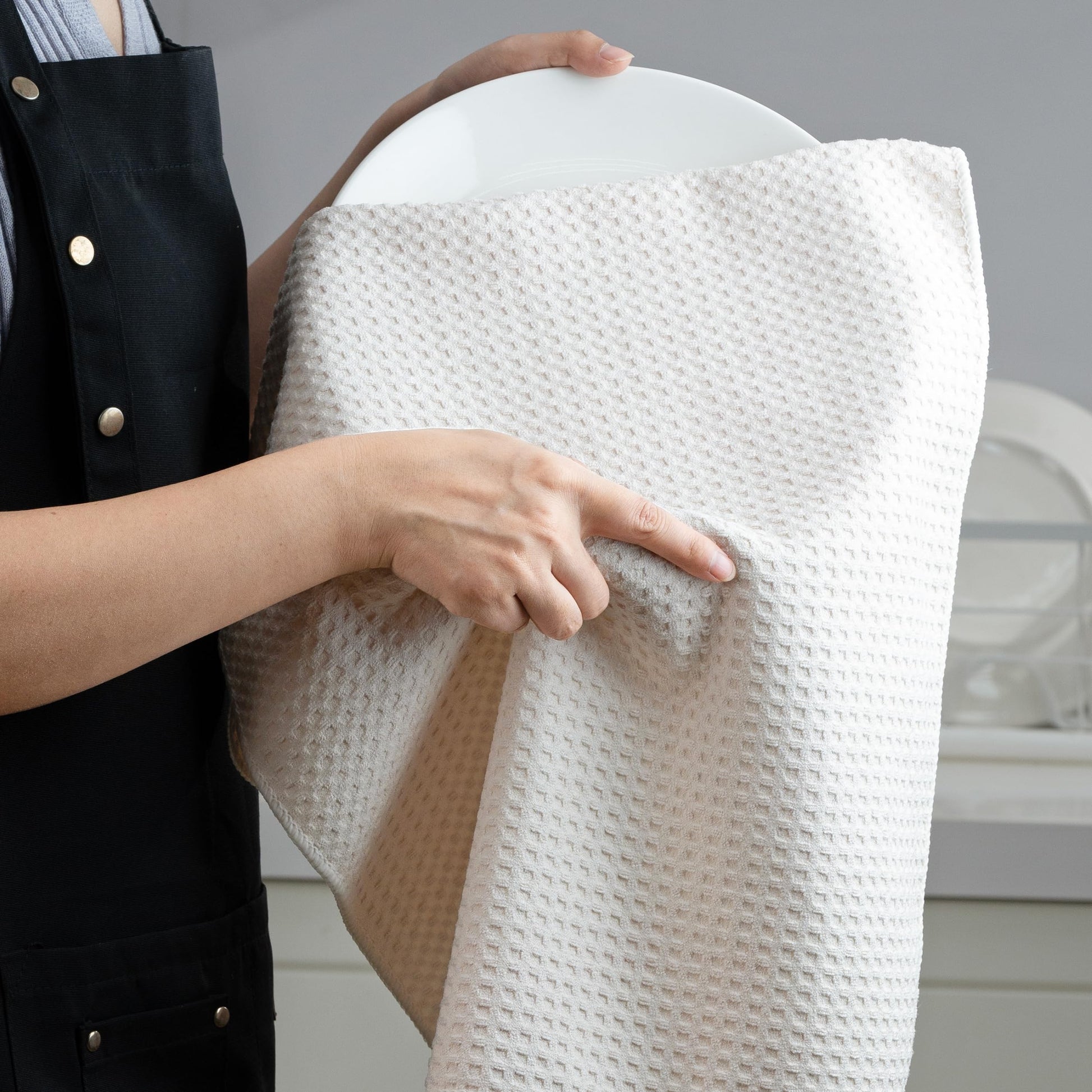 - Super soft and ultra absorbent professional weight waffle weave holds more than 8x its weight in liquids but dries 2x faster than traditional fibers