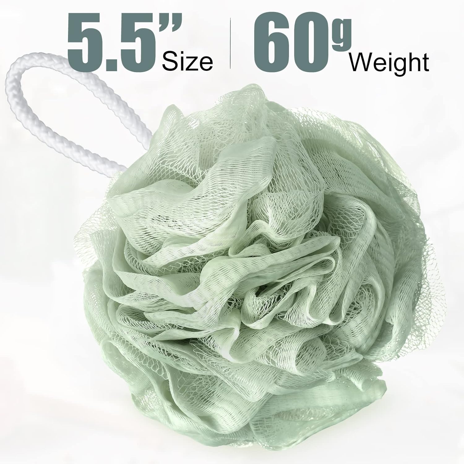 - Enjoy the Bath: each body sponge loofah weighs about 60 grams and measures about 5.5 inches, soft and dense without leaving scratches on your body; These large mesh puff soft scrubbers are made of PE material, which is skin friendly, soft and smooth, which will help you gently exfoliate and cleanse your skin pores
