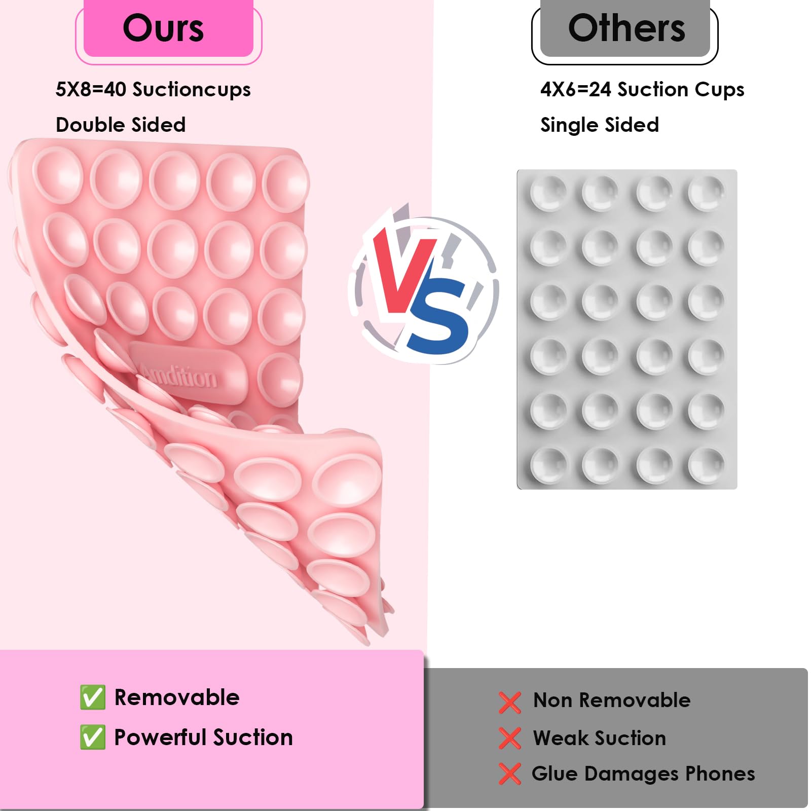 - 24 Strong Suction Cups: The Sucky Silicone Suction Phone Case ensures a secure and stable hold on smooth surfaces like mirrors, windows, tiles, and more. Enjoy free handed use without worrying about your phone slipping or falling.