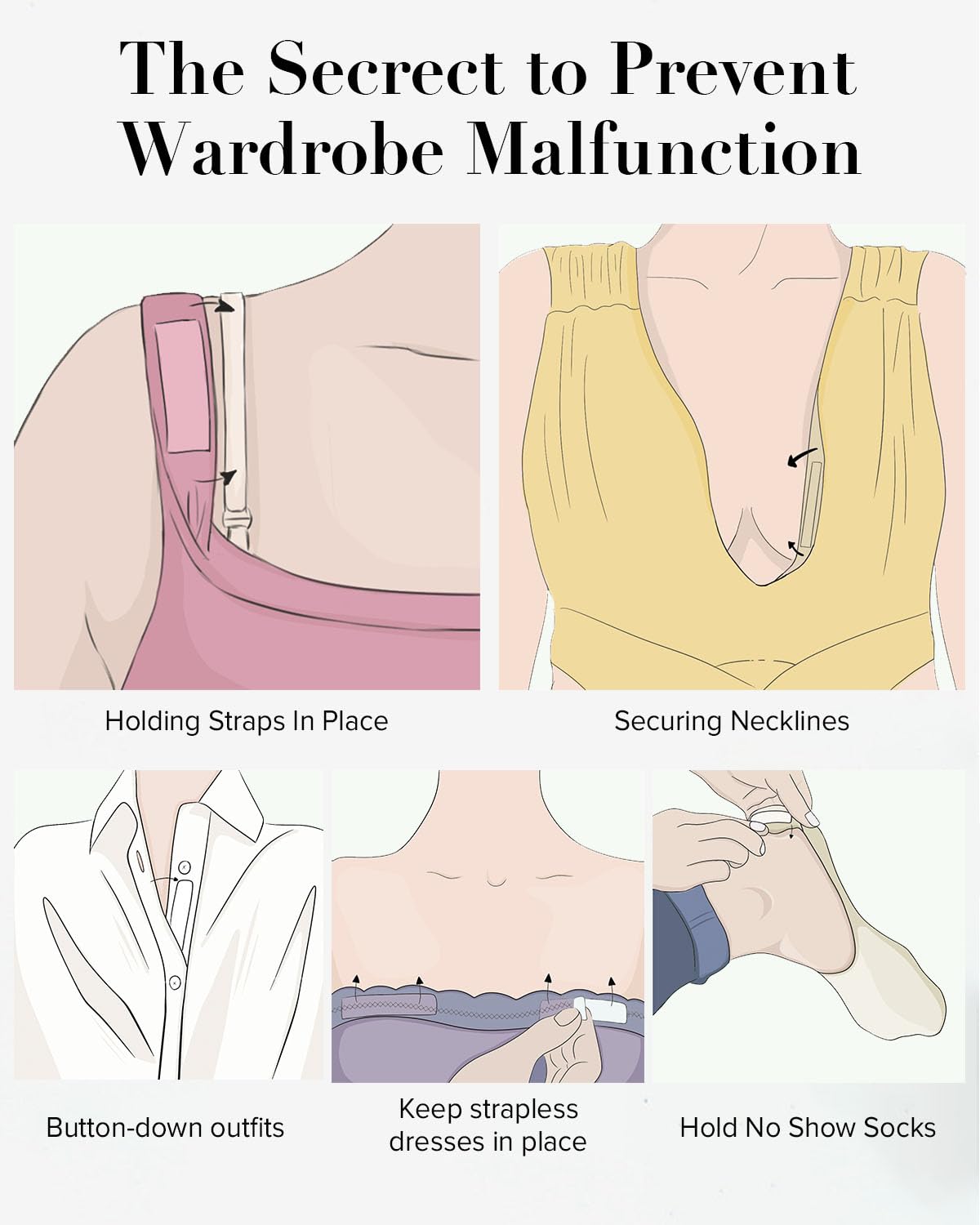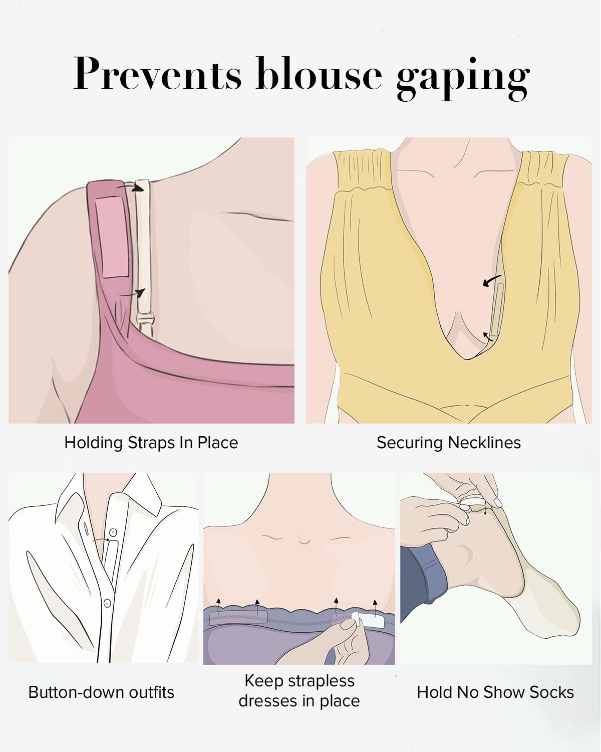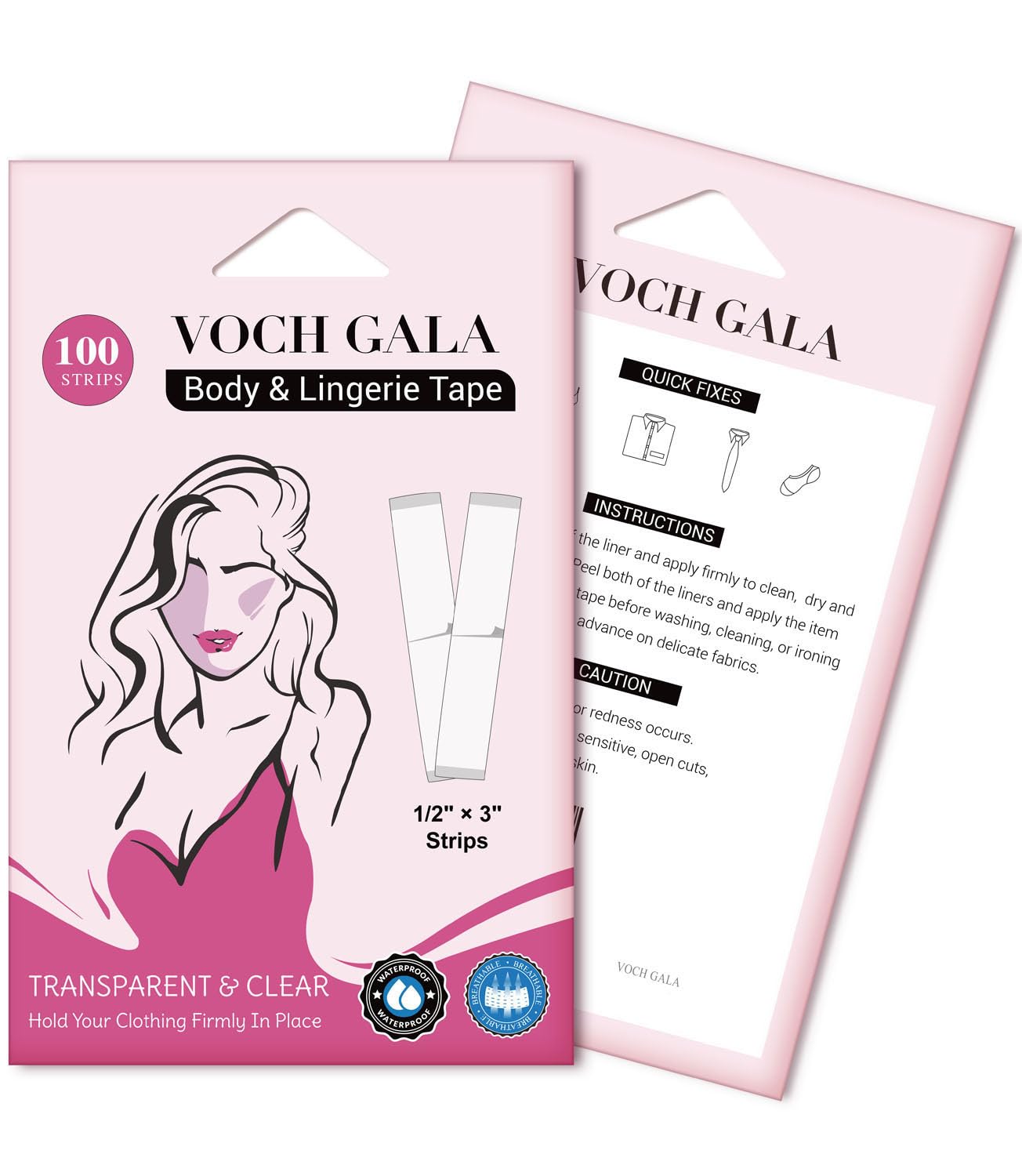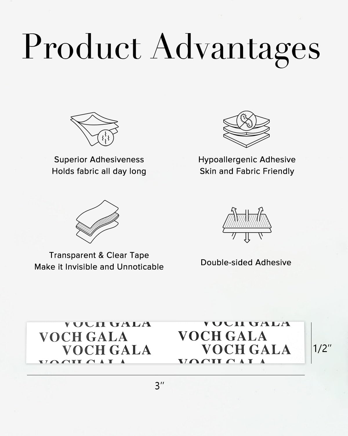 - HOLDS CLOTHING STEADY ALL DAY – VOCH GALA Double Sided Tape for Clothes and Fashion is your ultimate fabric tape and clothing tape solution to prevent wardrobe malfunctions, secure dresses, shirts, hems, and even keep socks and shoes in place across weddings, meetings, or everyday outings.