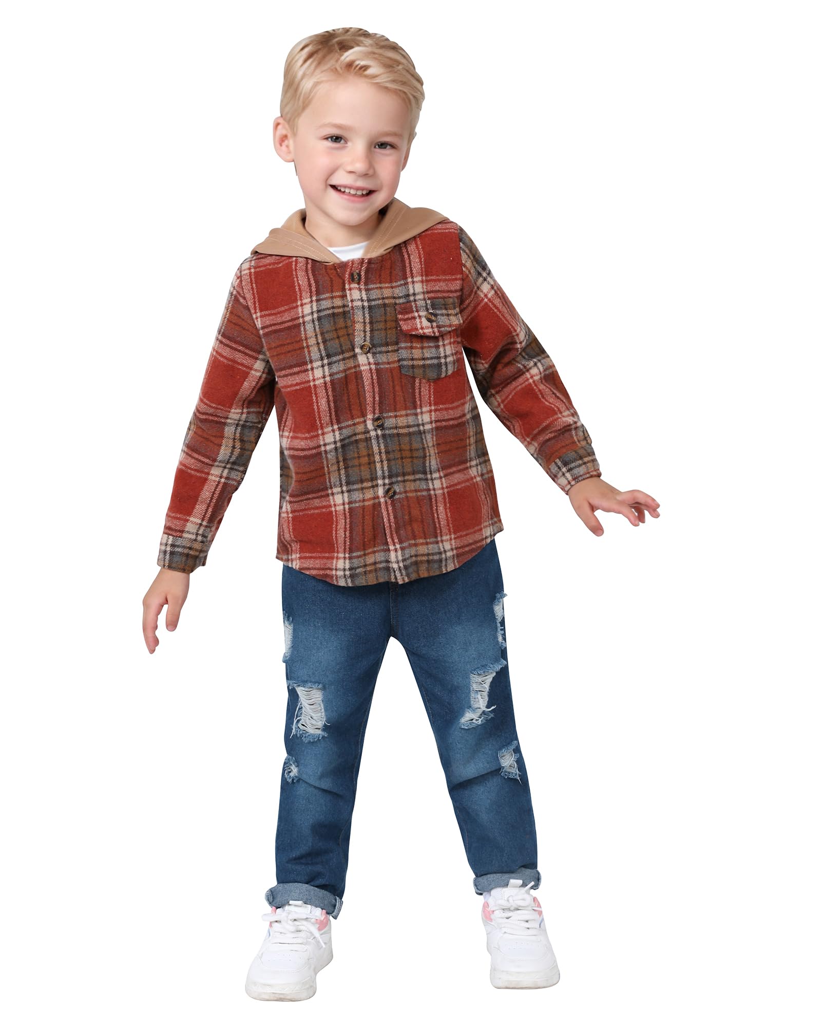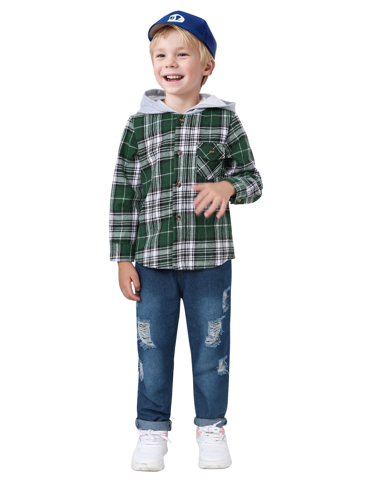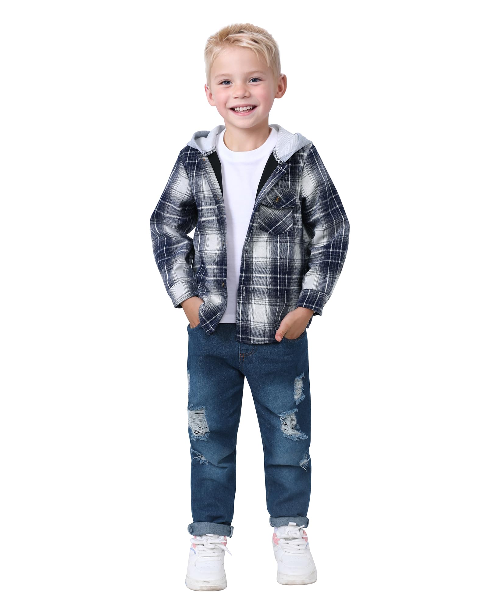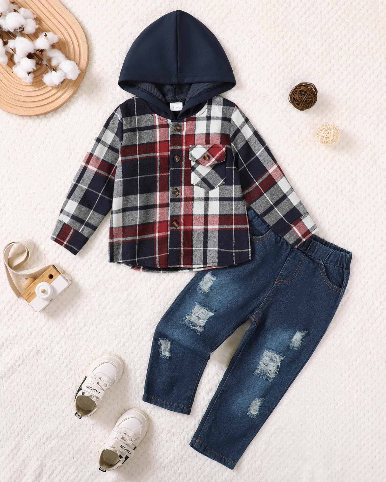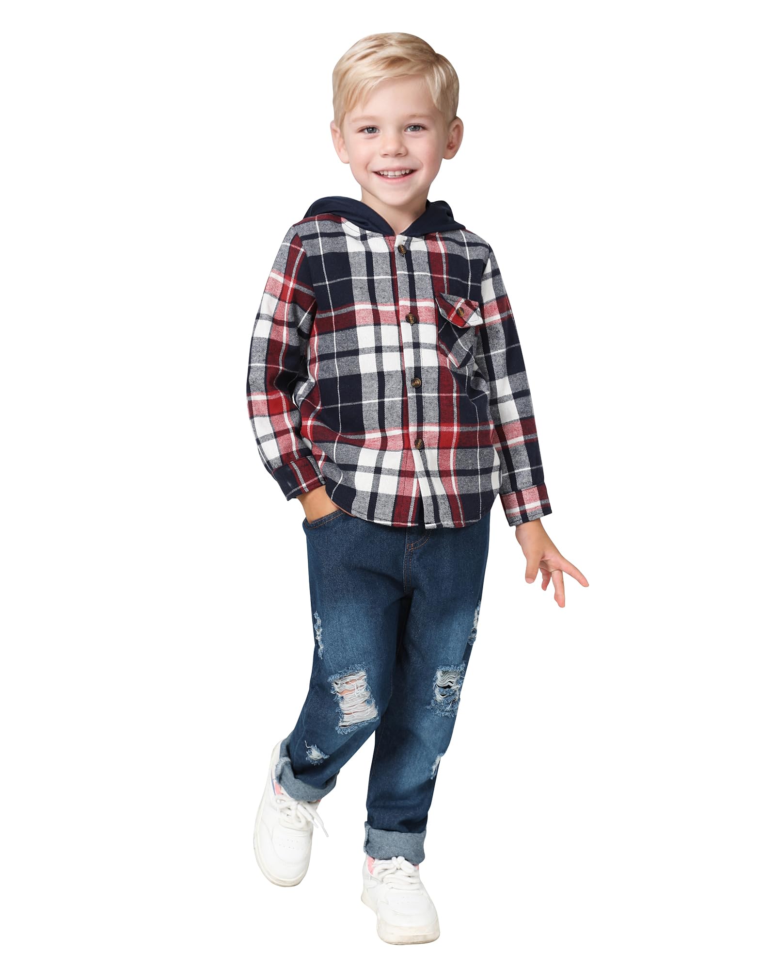 - Toddler Boys Clothes Design---Long sleeves and hooded tops with different plaid blocks add interest and visual appeal. The hooded design provides extra head protection for children during outdoor activities.Matching with cool ripped blue denim jeans, fashion and stylish, bring out the fashionista in your little one.