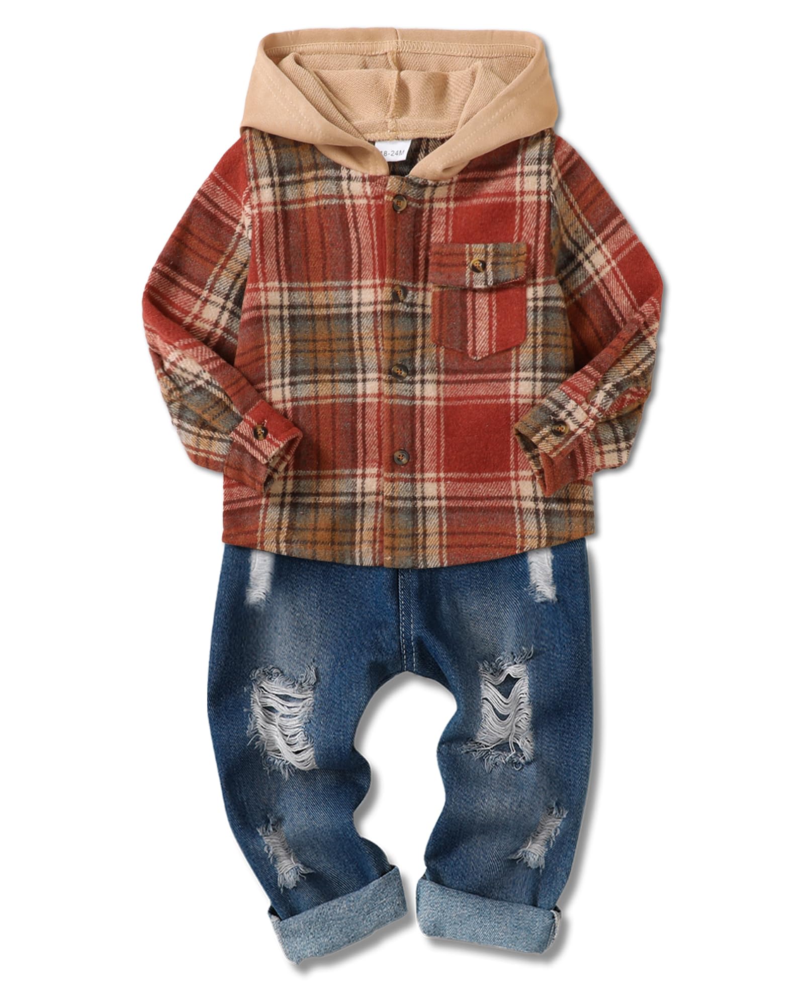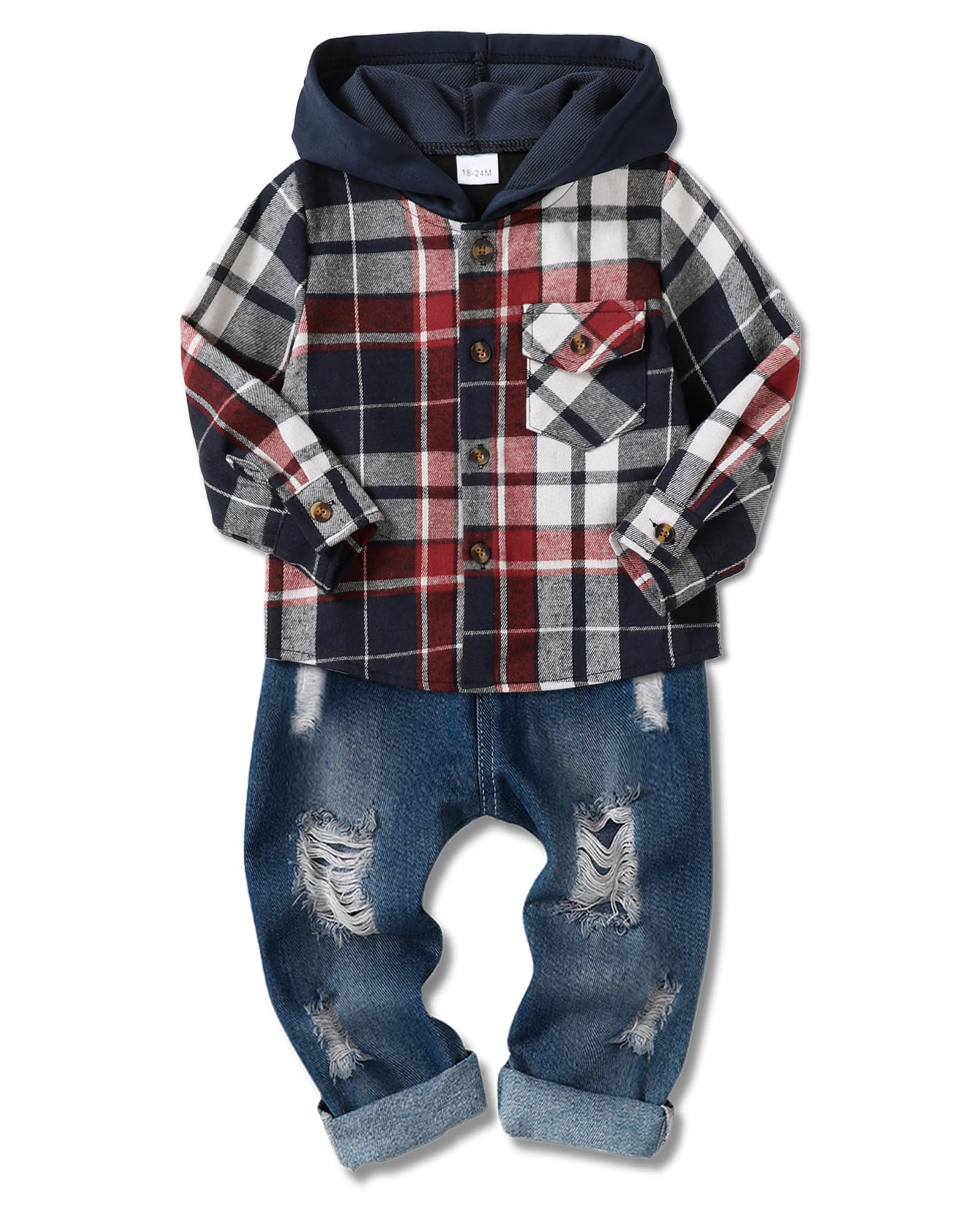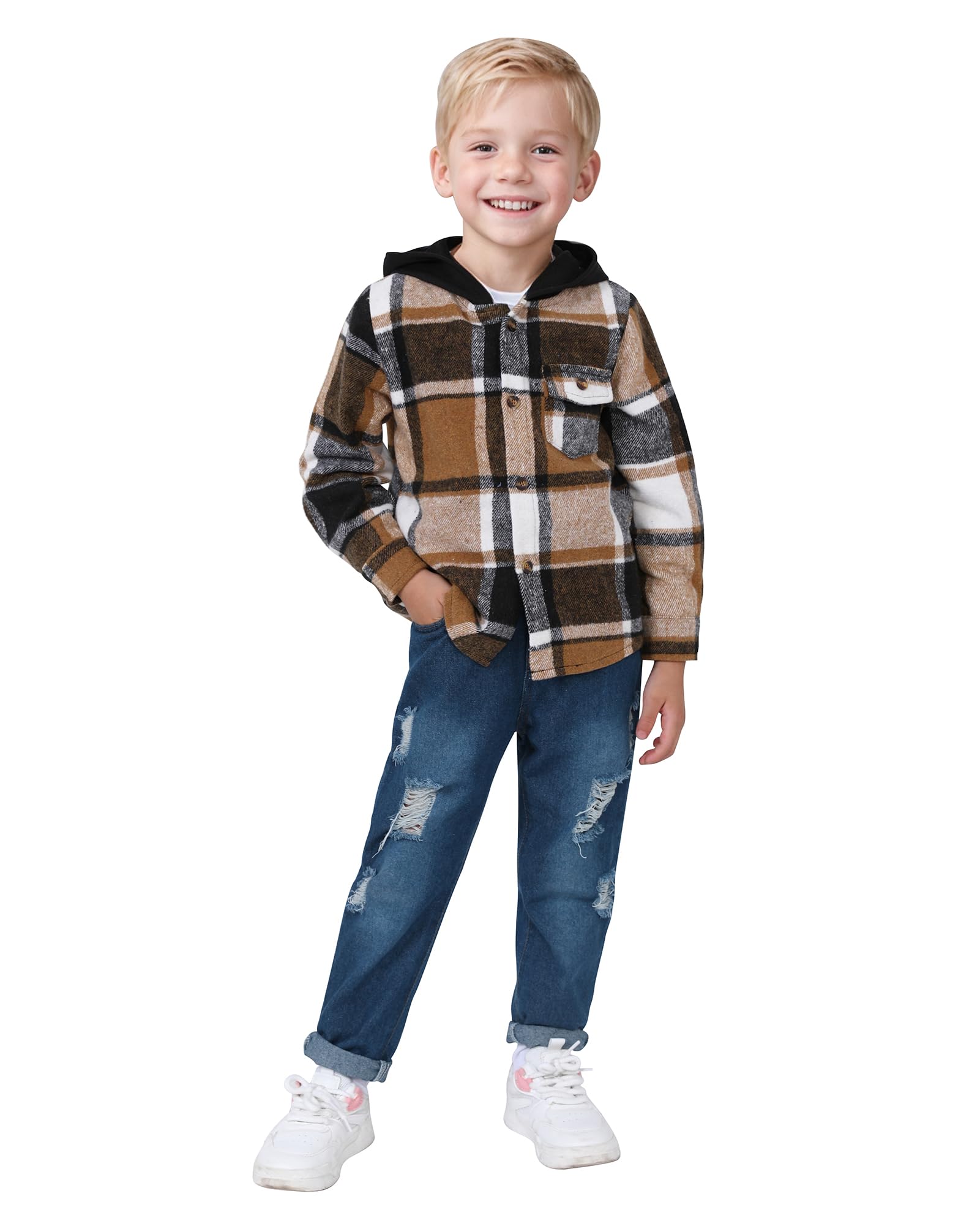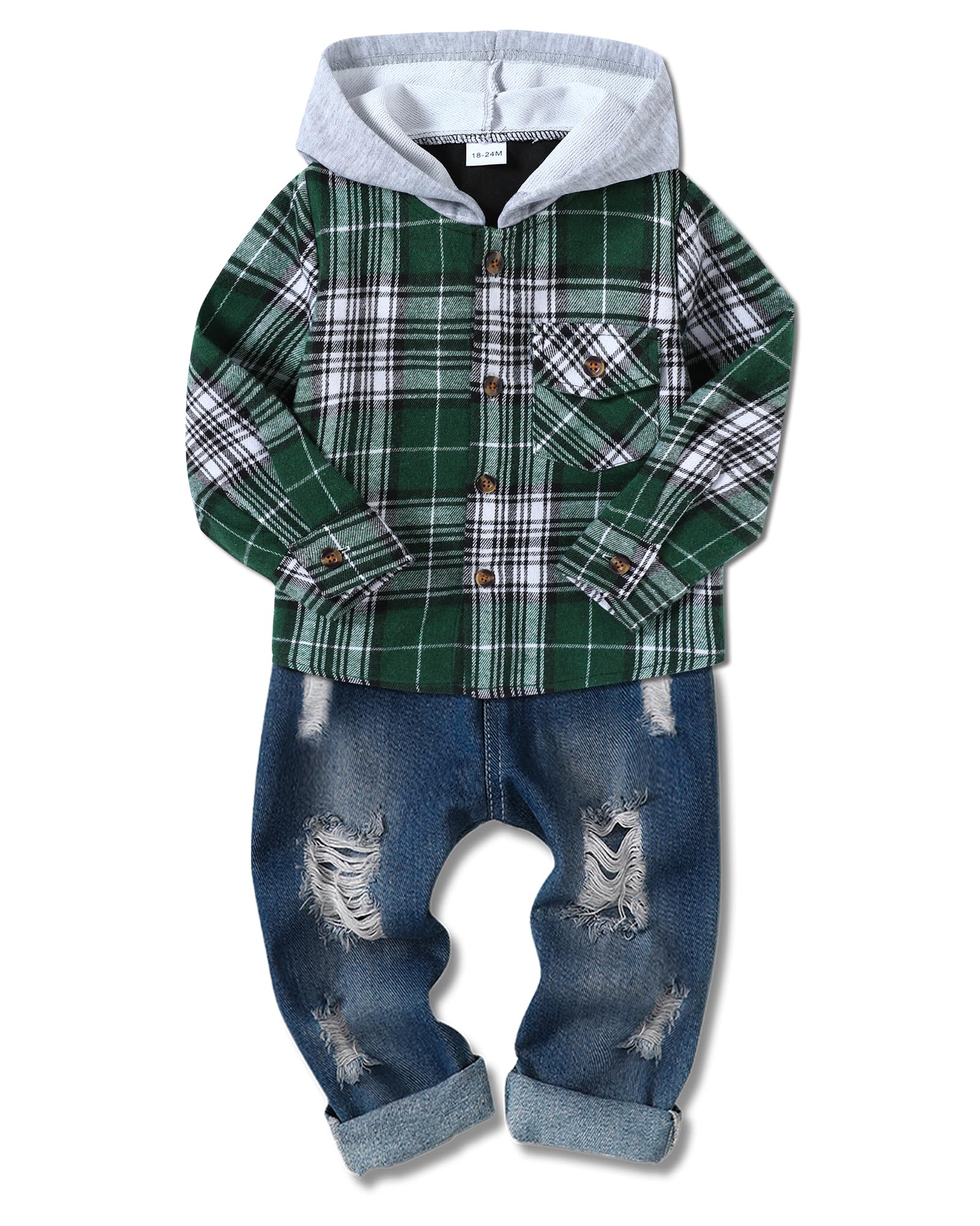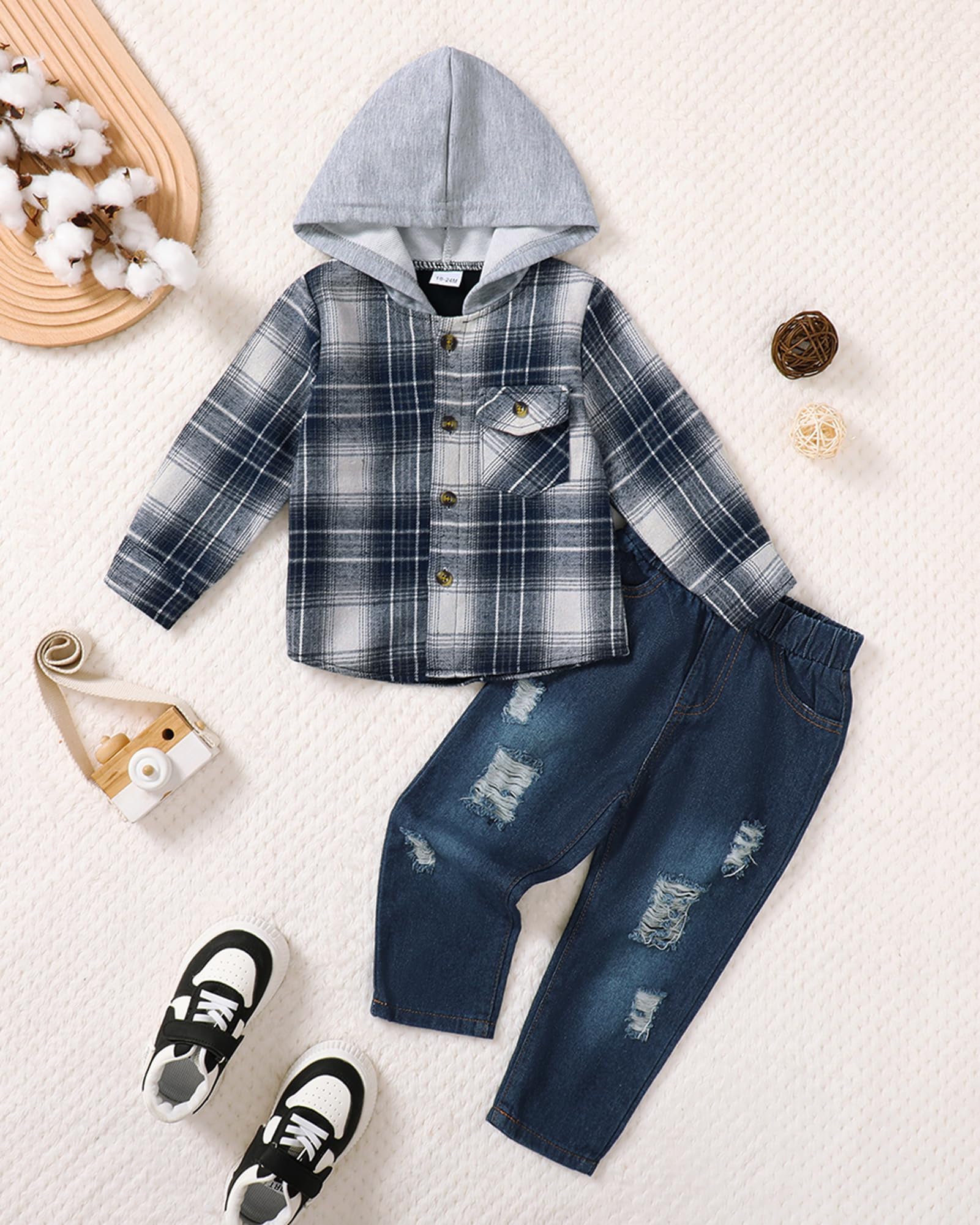 - Toddler Boys Clothes Design---Long sleeves and hooded tops with different plaid blocks add interest and visual appeal. The hooded design provides extra head protection for children during outdoor activities.Matching with cool ripped blue denim jeans, fashion and stylish, bring out the fashionista in your little one.