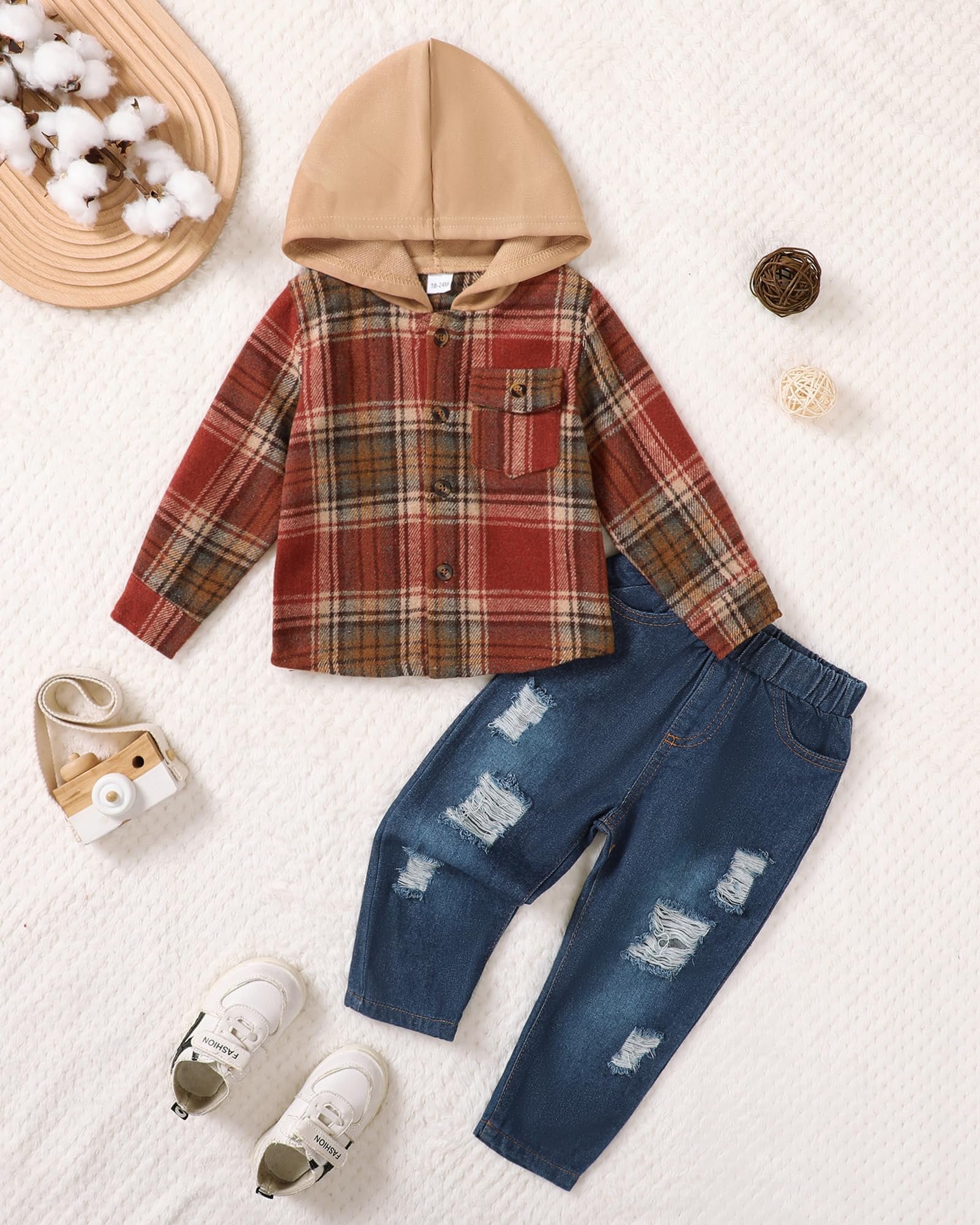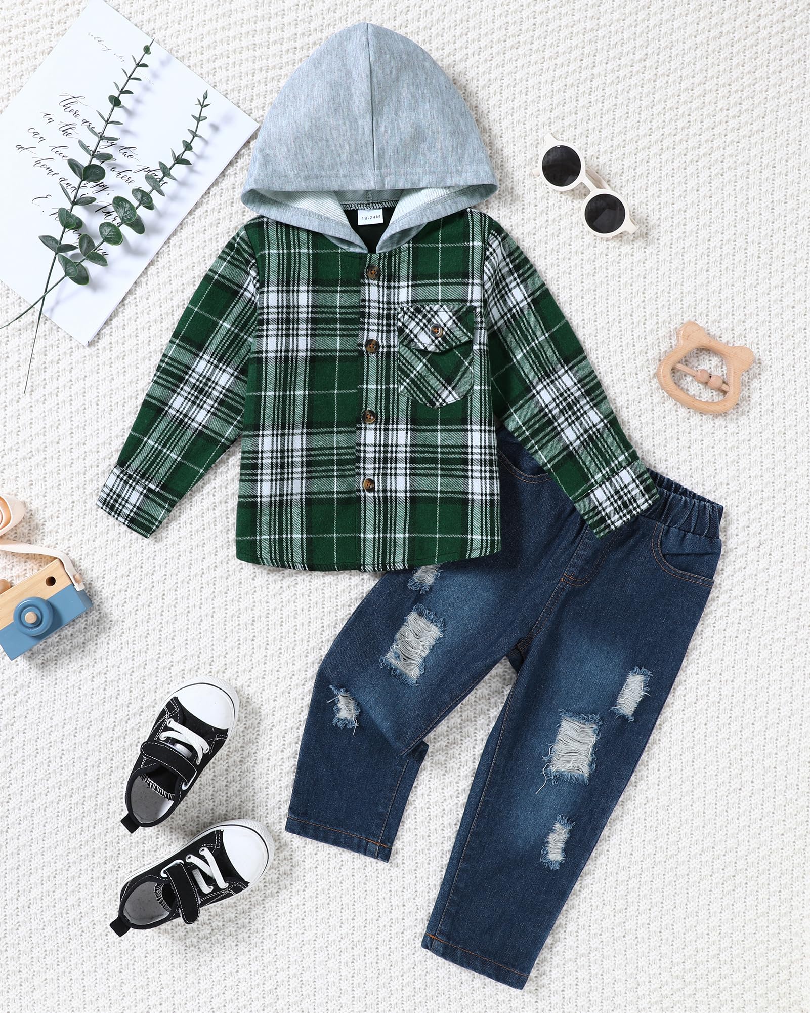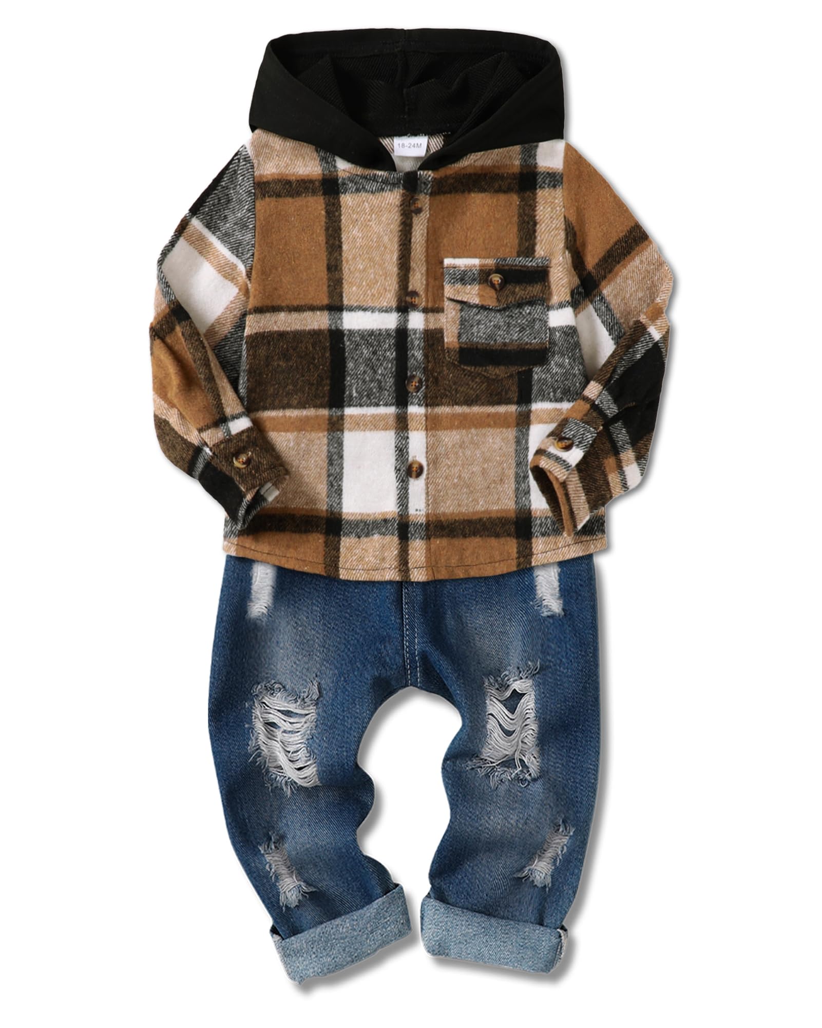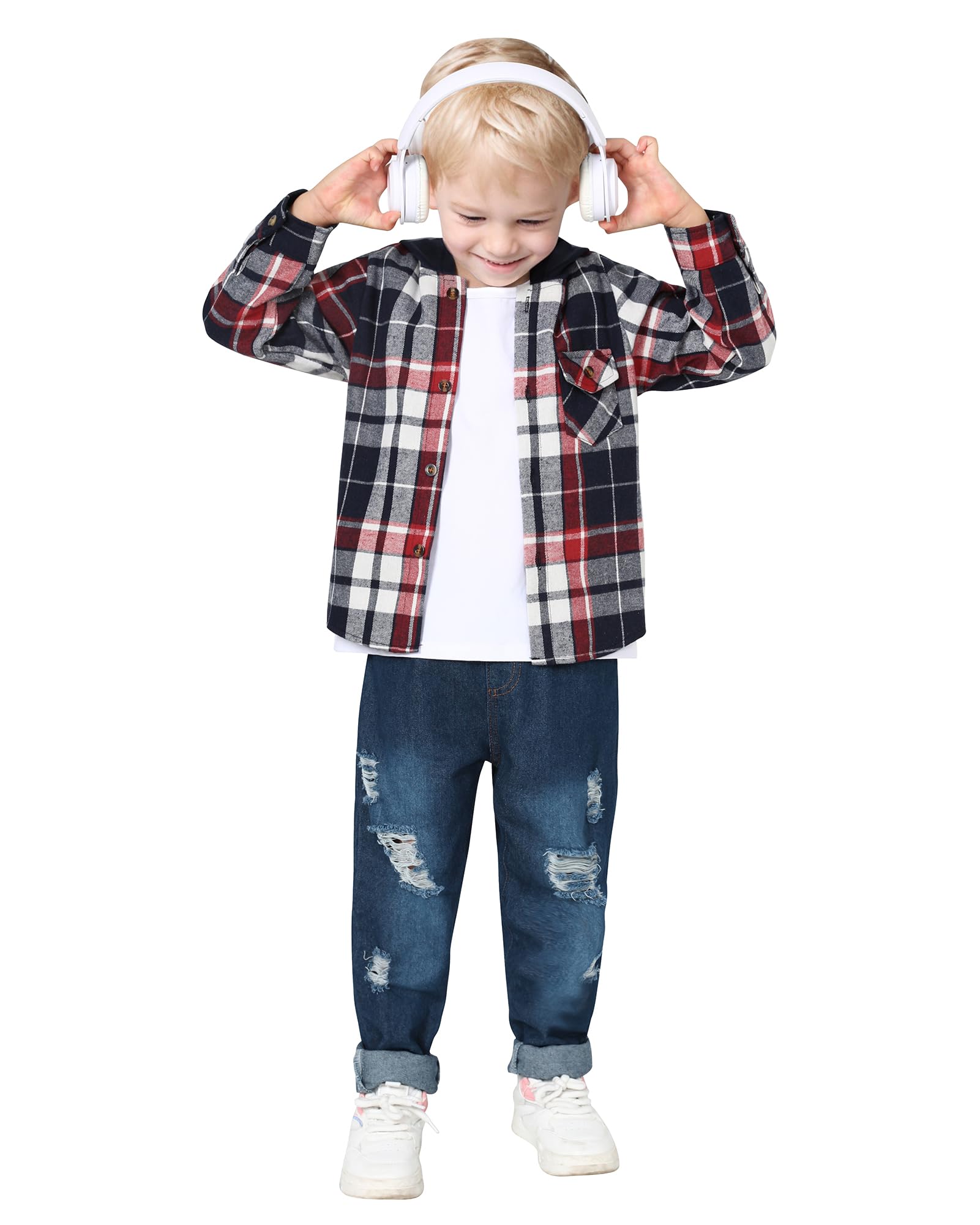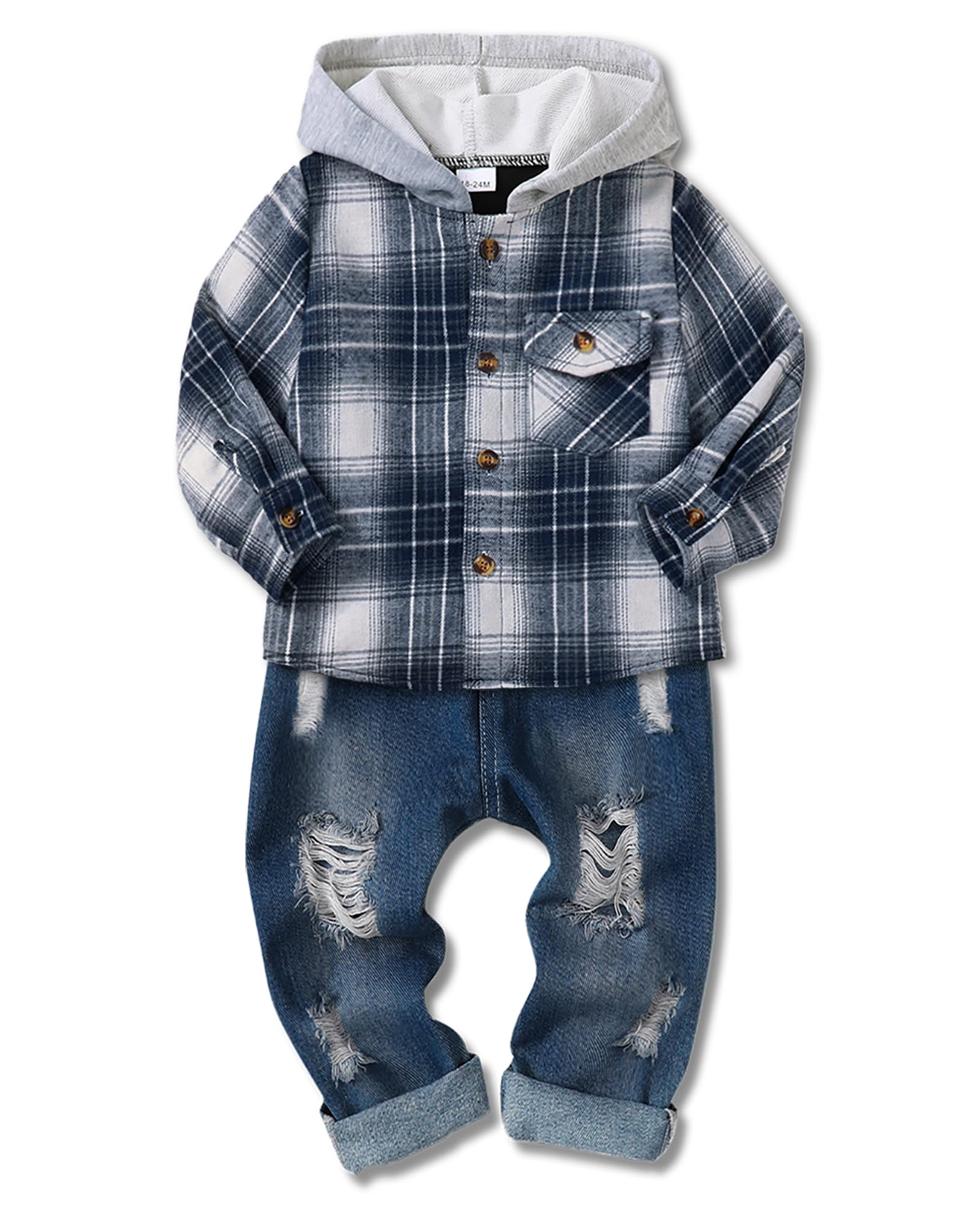 - Toddler Boys Clothes Design---Long sleeves and hooded tops with different plaid blocks add interest and visual appeal. The hooded design provides extra head protection for children during outdoor activities.Matching with cool ripped blue denim jeans, fashion and stylish, bring out the fashionista in your little one.