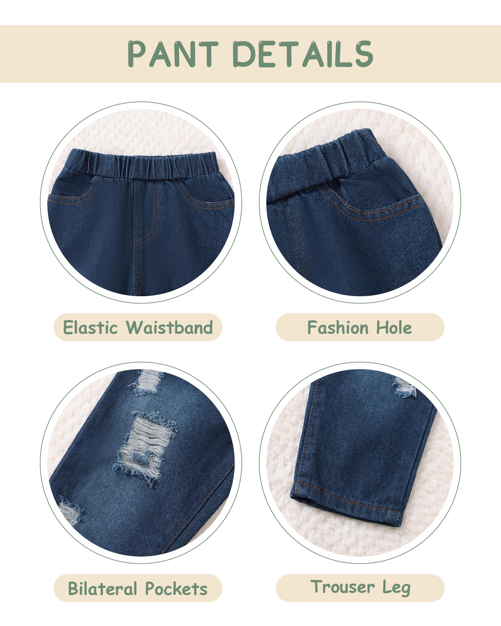 - Kids Clothes 2PCS Outfit--You would get 1 hoodies and 1 ripped jeans, 2PCS cute clothes for boys. Please wash dark and light colored clothes separately.